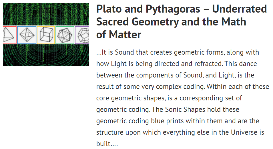 Plato and Pythagoras – Underrated Sacred Geometry and The Math of Matter