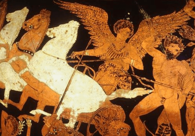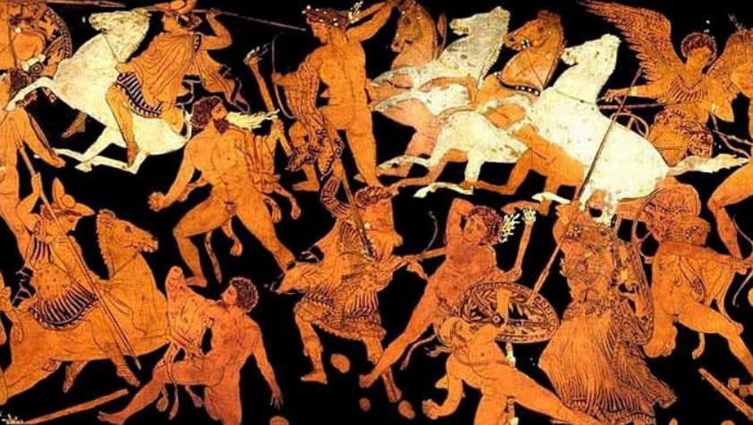 Time passed but Gaia once again distressed and oppressed instigated a new intervention. This led to a climatic war between the Titan Gods and The Olympian Gods. The Titans held Mount Othrys and were assisted by one hundred Gigantes. These faced off against Zeus and the other five male Olympian Gods, and who were supported in the fierce battle by The Moirai – the Fates, and Nike – Victory.