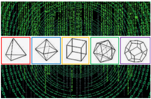 The Five Platonic Solids hold their own corresponding and complex geometric codes based on those of the Sonic Shapes within them. The Five Platonic Solids hold the core geometric codes of all physical structures. That means everything and we mean EVERYTHING, all forms of matter and energy in our known universe are structured upon these sets of geometric coding. That’s pretty important.