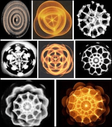 As he increased the sound pitch into even higher frequencies, the geometric patterns forming would appear with increasing complexity as if revealing the quantum energetic patterns of consciousness inherent in all of life. Incredibly complex patterns formed that looked like extensive neuronal networks, blood pulsing through capillaries, weather patterns in the sky, close ups of living biological organisms like trees or leaves, and even what appeared to be nebulas and spinning galaxies moving in deep space.