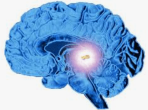 In Tibetan Buddhism, this is the source of the ‘White Drop‘ that descends to the heart centre where it mixes with the ascending ‘Red Drop‘, attaining an enlightened body and mind. All this activity is seen as cerebral sex as the phallic-shaped pineal gland releases a pure white liquid light that impregnates the nearby bi-lobed pituitary gland, which then releases hormones in the blood that launches a second (spiritual) puberty in the body.